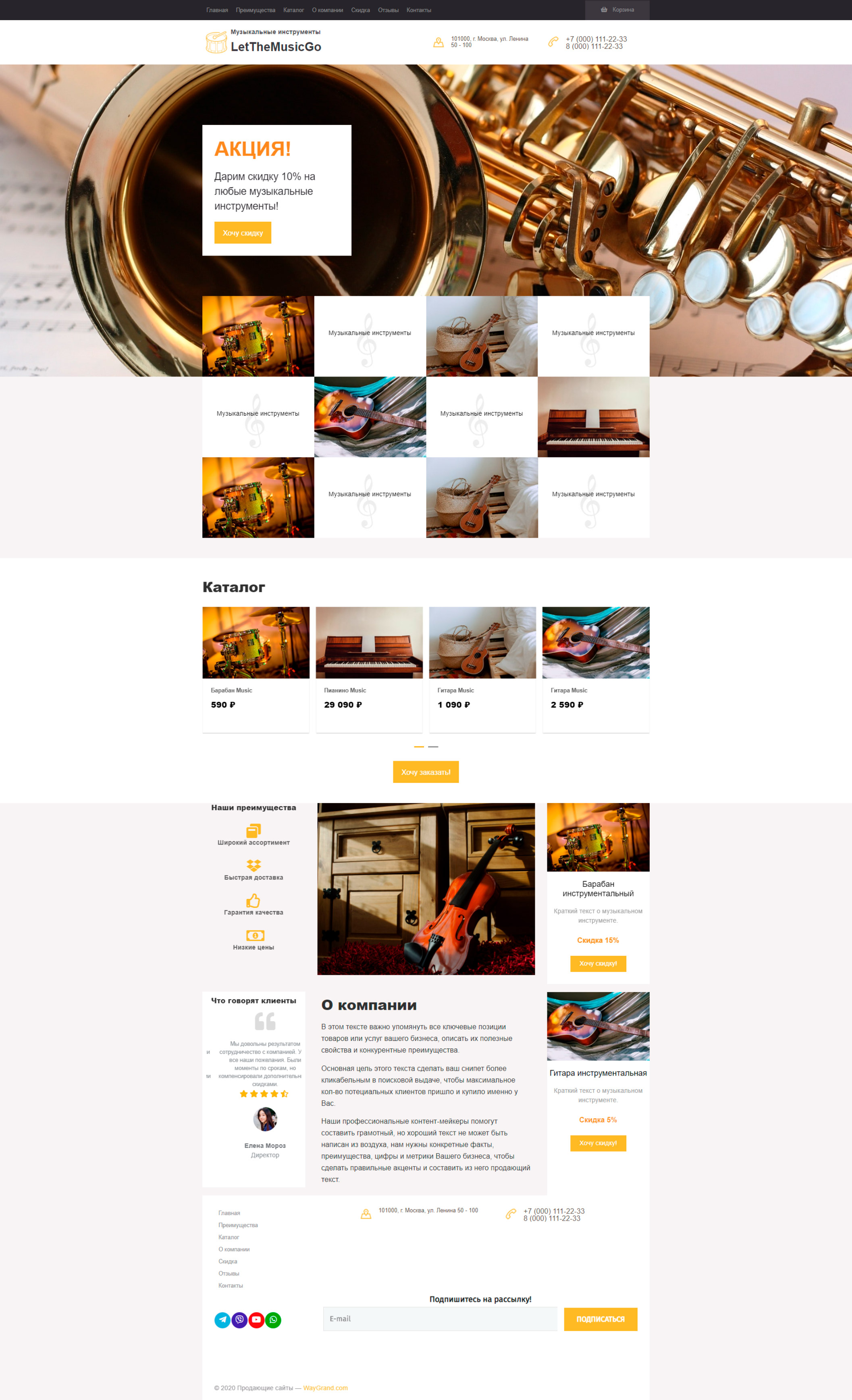 Закажите готовый продающий сайт лендинг #0710201 в Самаре за 1-3 дня «под ключ»: свёрстан, отрисован и готов к рекламе. Тематика шаблона «Музыкальные инструменты».