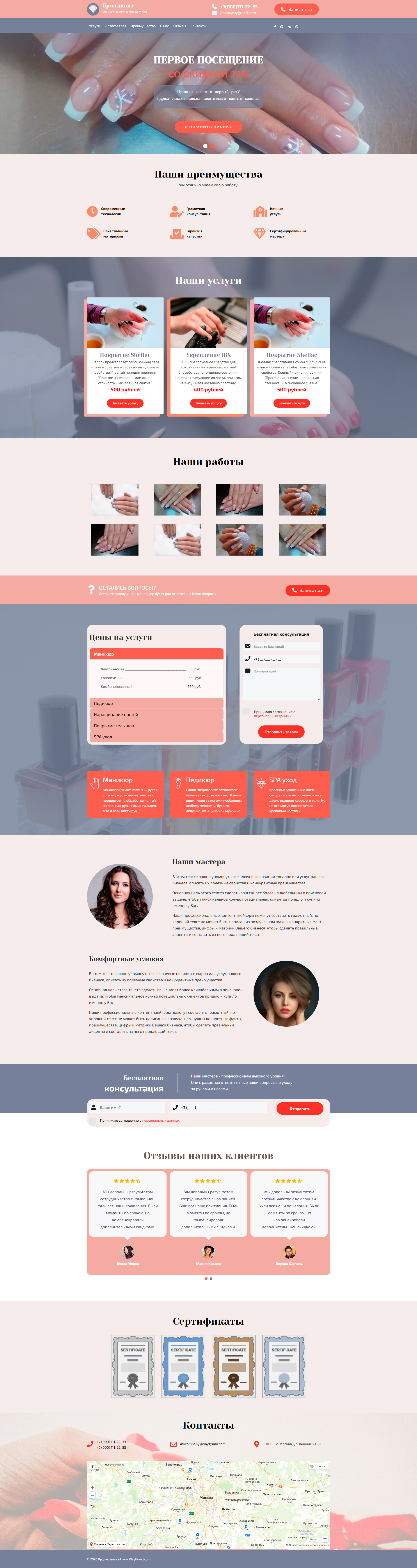 Закажите готовый продающий сайт лендинг #1107201 в Самаре за 1-3 дня «под ключ»: свёрстан, отрисован и готов к рекламе. Тематика шаблона «Салон маникюра и педикюра».