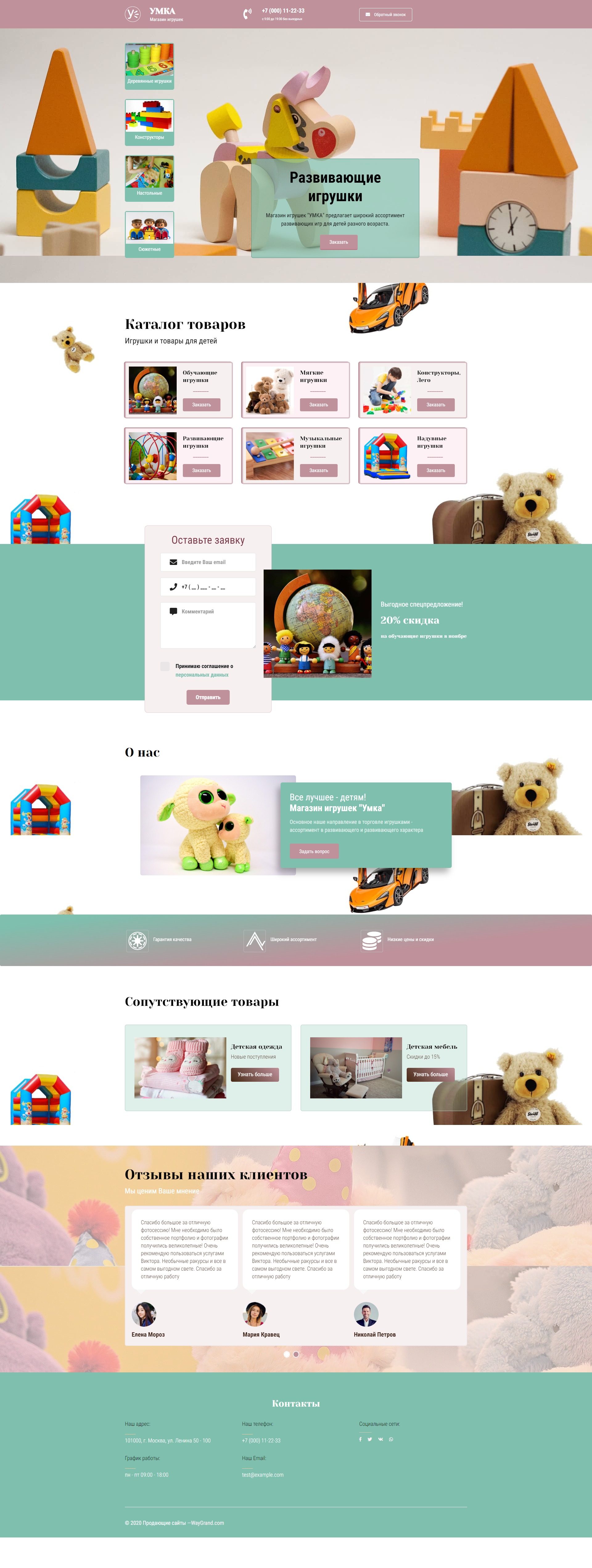 Закажите готовый продающий сайт лендинг #2442201 в Самаре за 1-3 дня «под ключ»: свёрстан, отрисован и готов к рекламе. Тематика шаблона «Магазин игрушек».