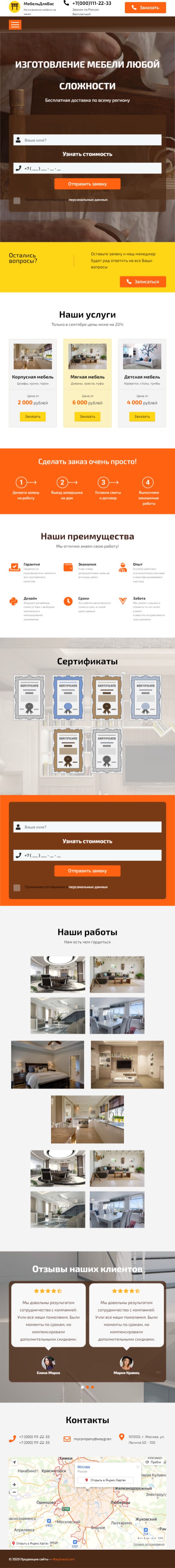 Закажите готовый продающий сайт лендинг #0903201 в Самаре за 1-3 дня «под ключ»: свёрстан, отрисован и готов к рекламе. Тематика шаблона «Изготовление мебели».