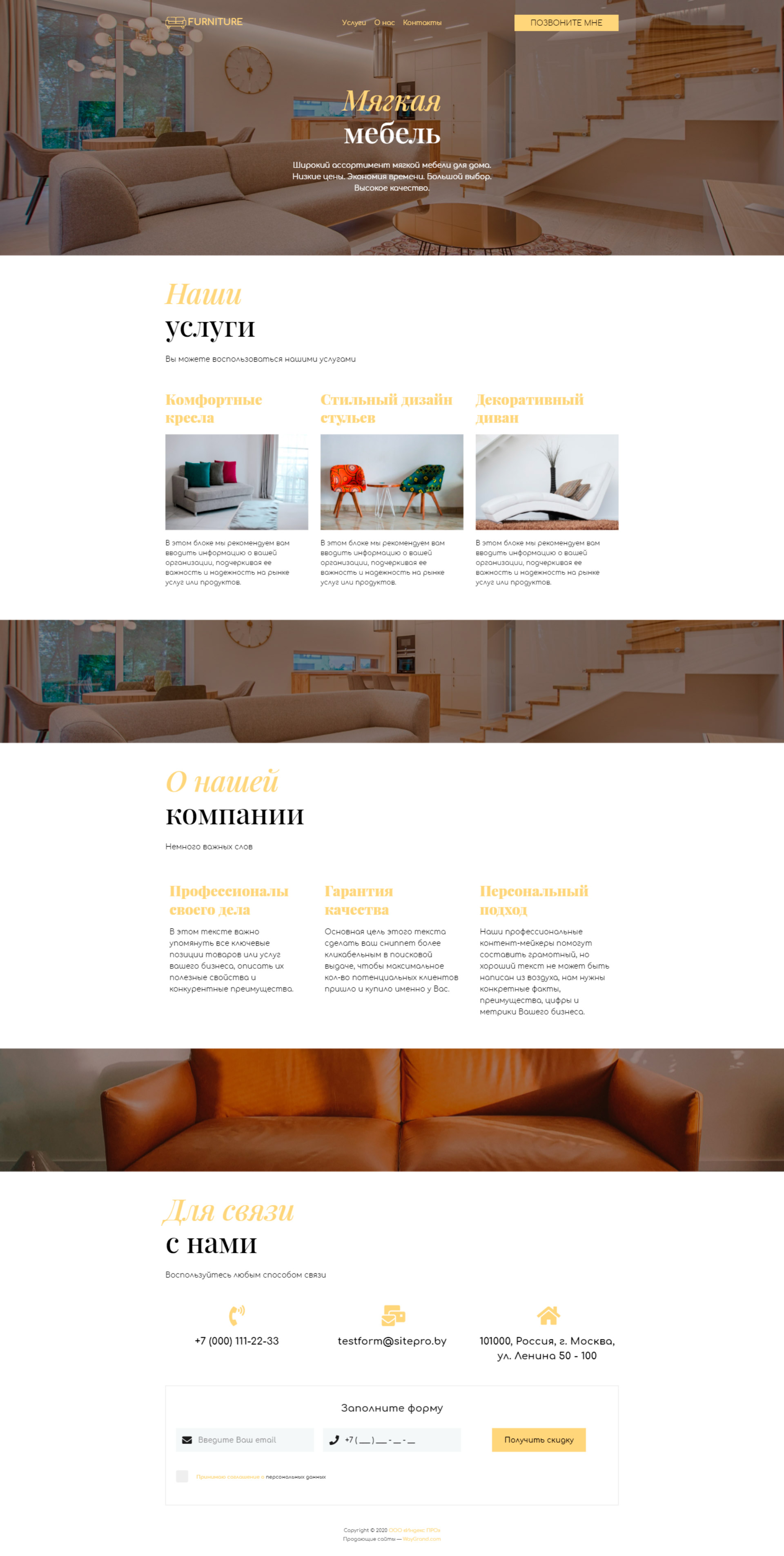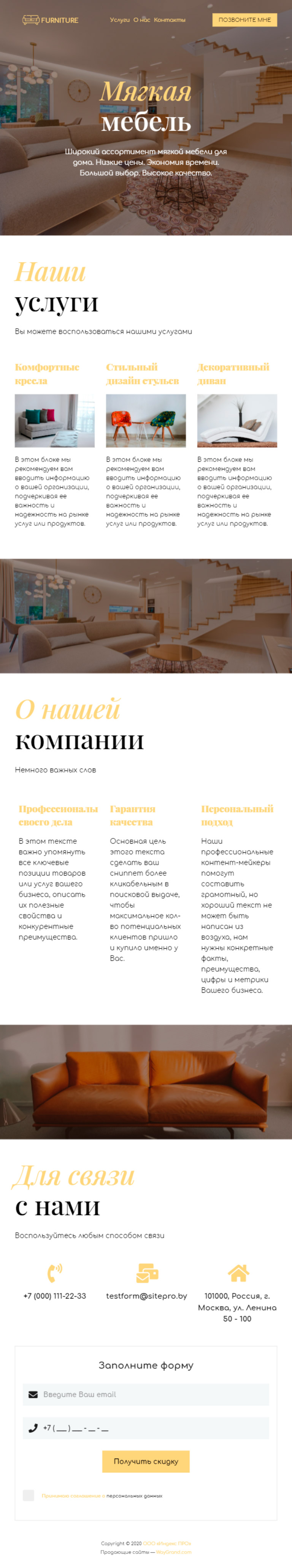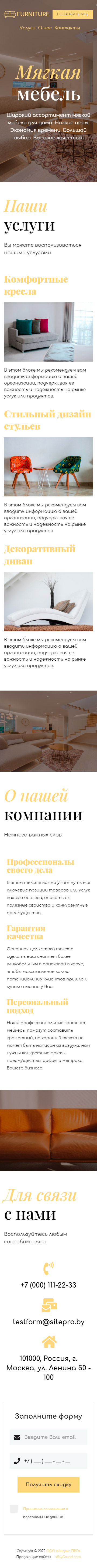 Закажите готовый продающий сайт визитка #0919101 в Самаре за 5-7 дня «под ключ»: свёрстан, отрисован и готов к рекламе. Тематика шаблона «Мягкая мебель».