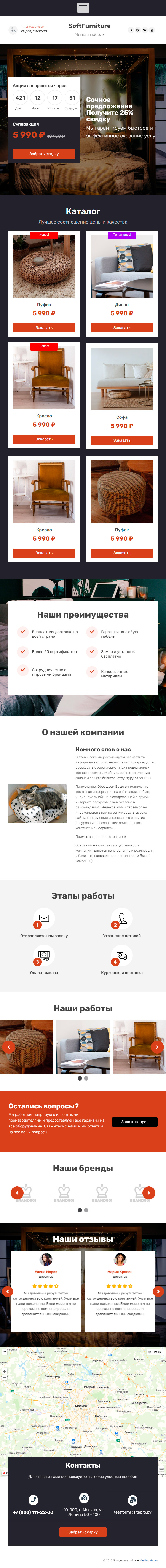 Закажите готовый продающий сайт лендинг #0919201 в Самаре за 1-3 дня «под ключ»: свёрстан, отрисован и готов к рекламе. Тематика шаблона «Мягкая мебель».