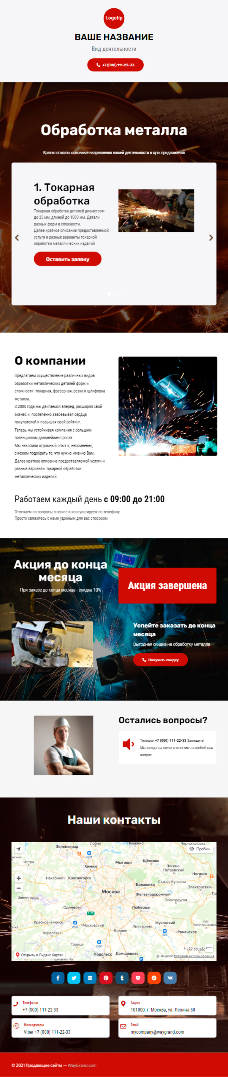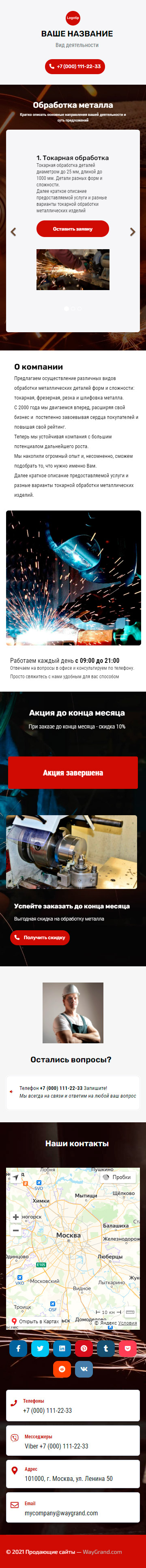Закажите готовый продающий сайт визитка #1209101 в Самаре за 5-7 дня «под ключ»: свёрстан, отрисован и готов к рекламе. Тематика шаблона «Обработка металла».