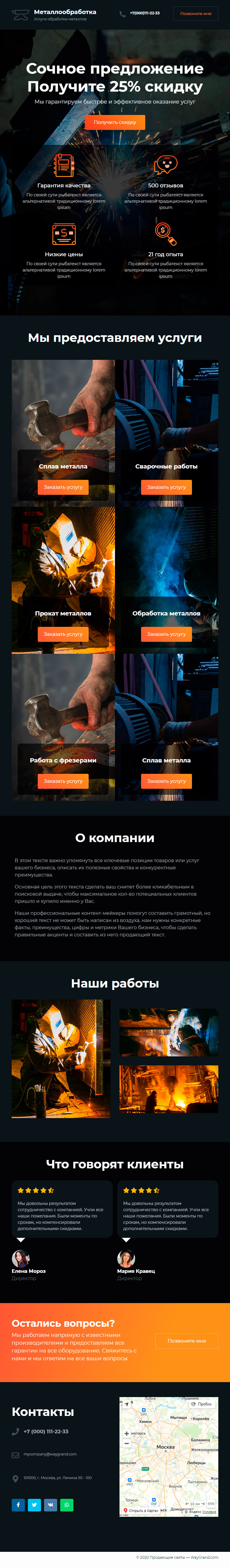 Закажите готовый продающий сайт лендинг #1209201 в Самаре за 1-3 дня «под ключ»: свёрстан, отрисован и готов к рекламе. Тематика шаблона «Металлообработка».
