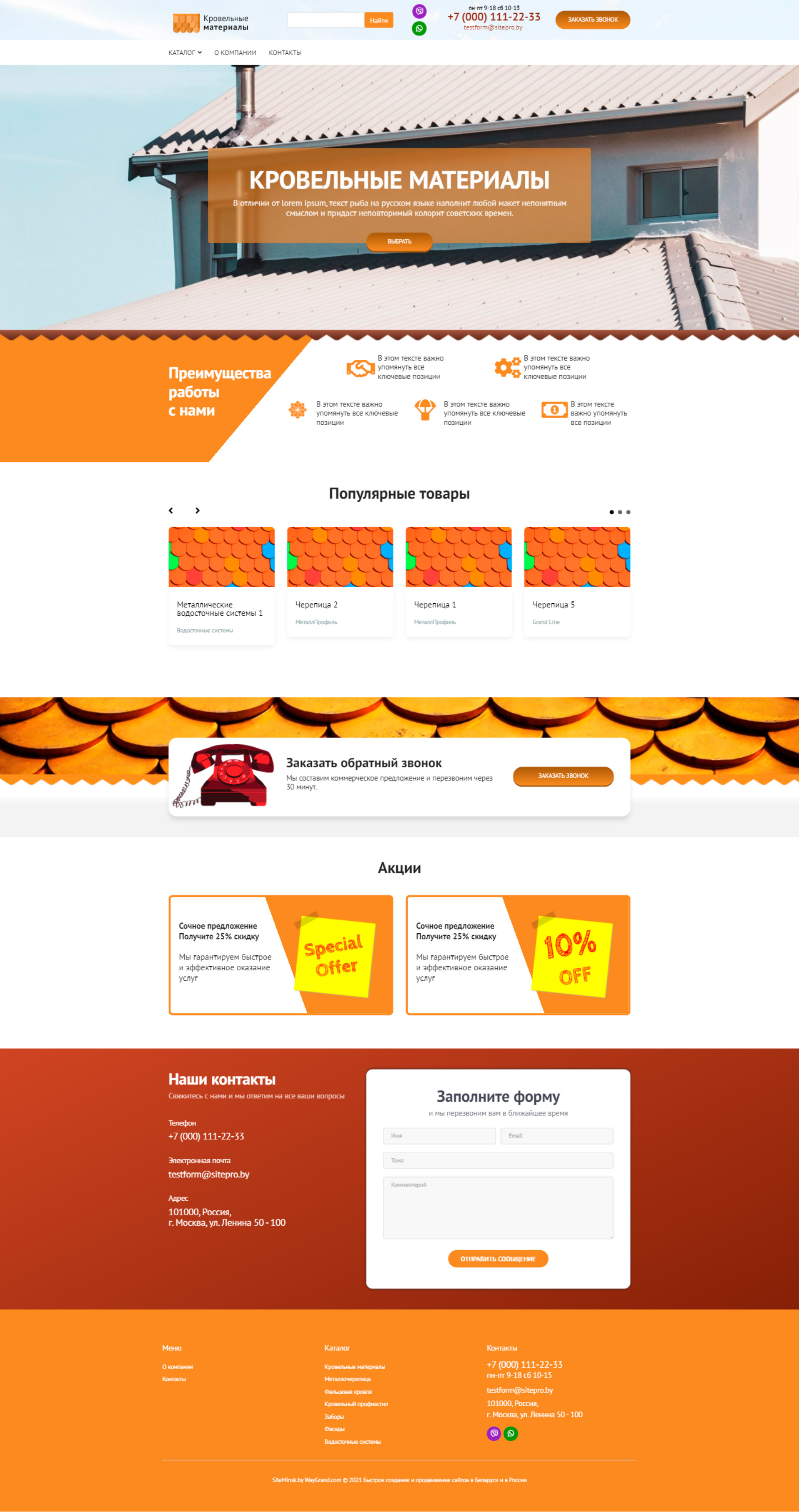 Закажите готовый продающий сайт визитка #2023402 в Самаре за 5-7 дня «под ключ»: свёрстан, отрисован и готов к рекламе. Тематика шаблона «Кровельные материалы».