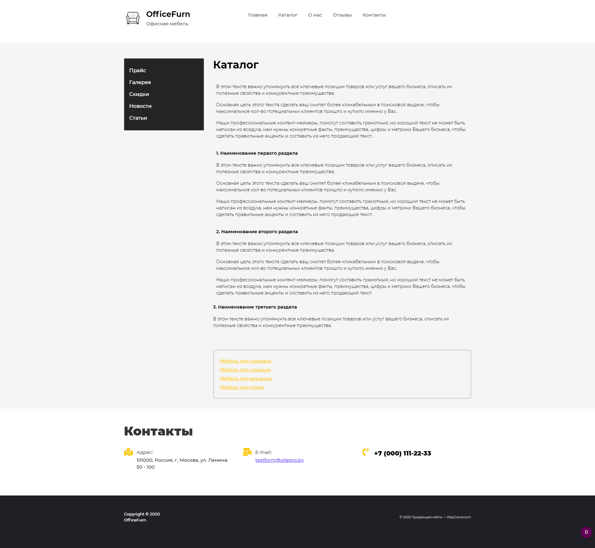 Закажите готовый продающий сайт визитка #0921301 в Самаре за 5-7 дня «под ключ»: свёрстан, отрисован и готов к рекламе. Тематика шаблона «Офисная мебель».