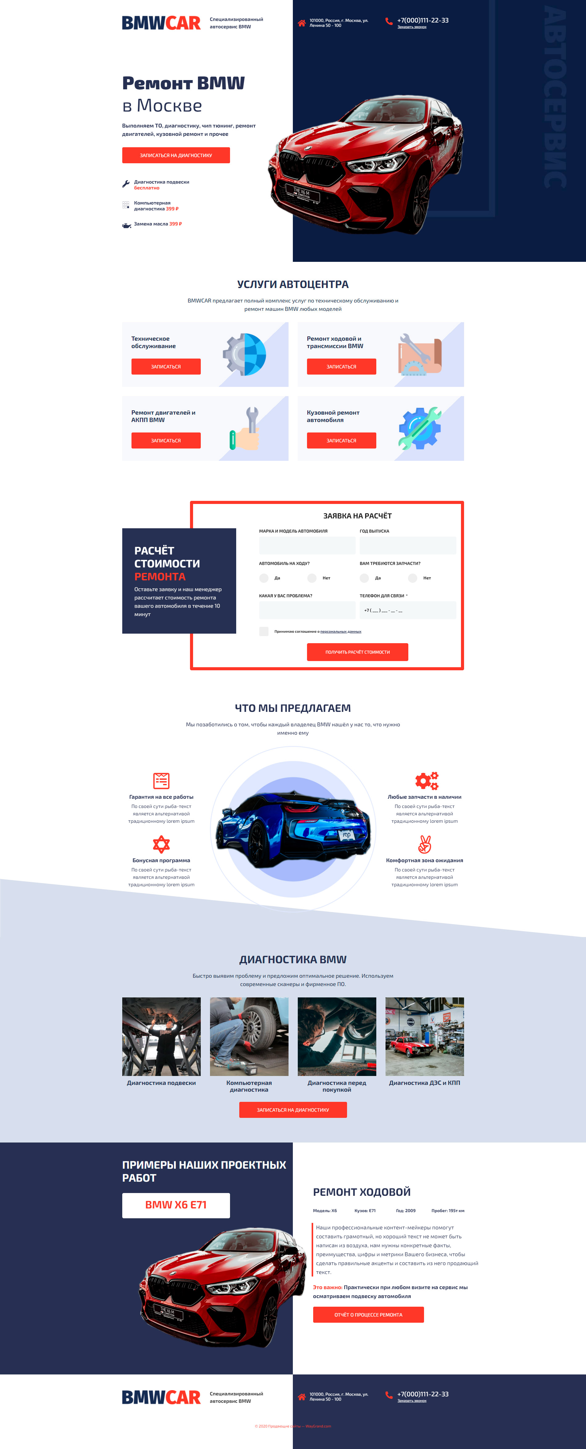 Закажите готовый продающий сайт лендинг #0210202 в Самаре за 1-3 дня «под ключ» по выгодным ценам на WayGrand: свёрстан, отрисован и готов к рекламе. Тематика шаблона «Ремонт BMW».