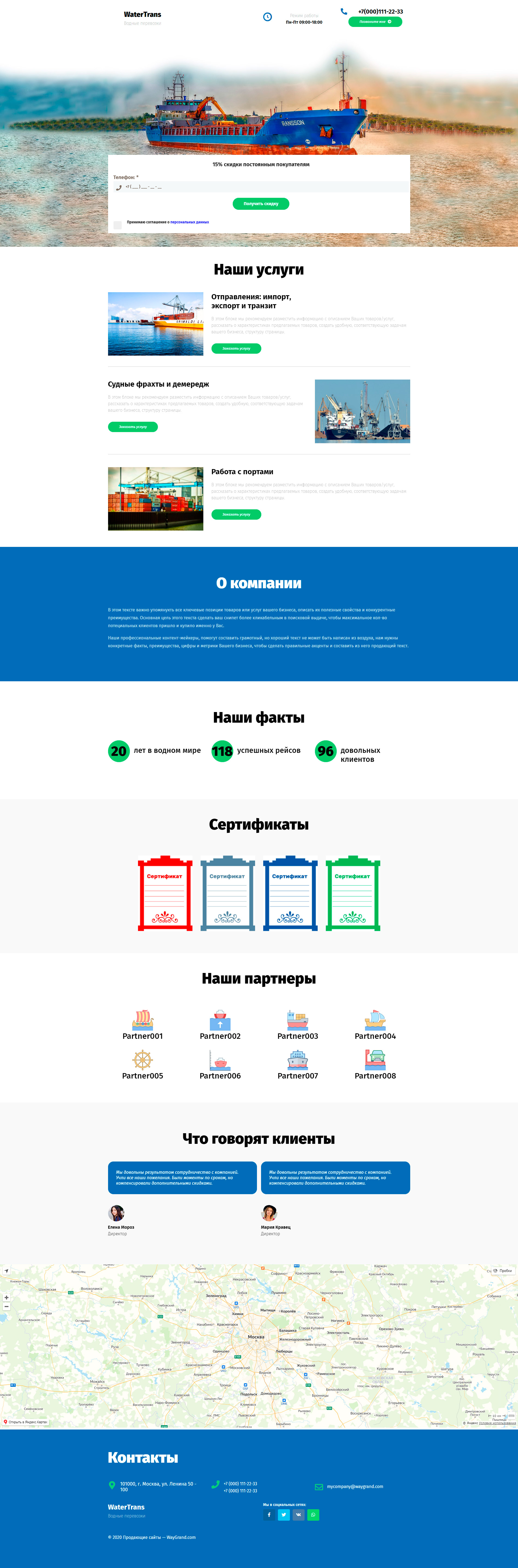 Закажите готовый продающий сайт лендинг #1908201 в Самаре за 1-3 дня «под ключ»: свёрстан, отрисован и готов к рекламе. Тематика шаблона «Морские перевозки».