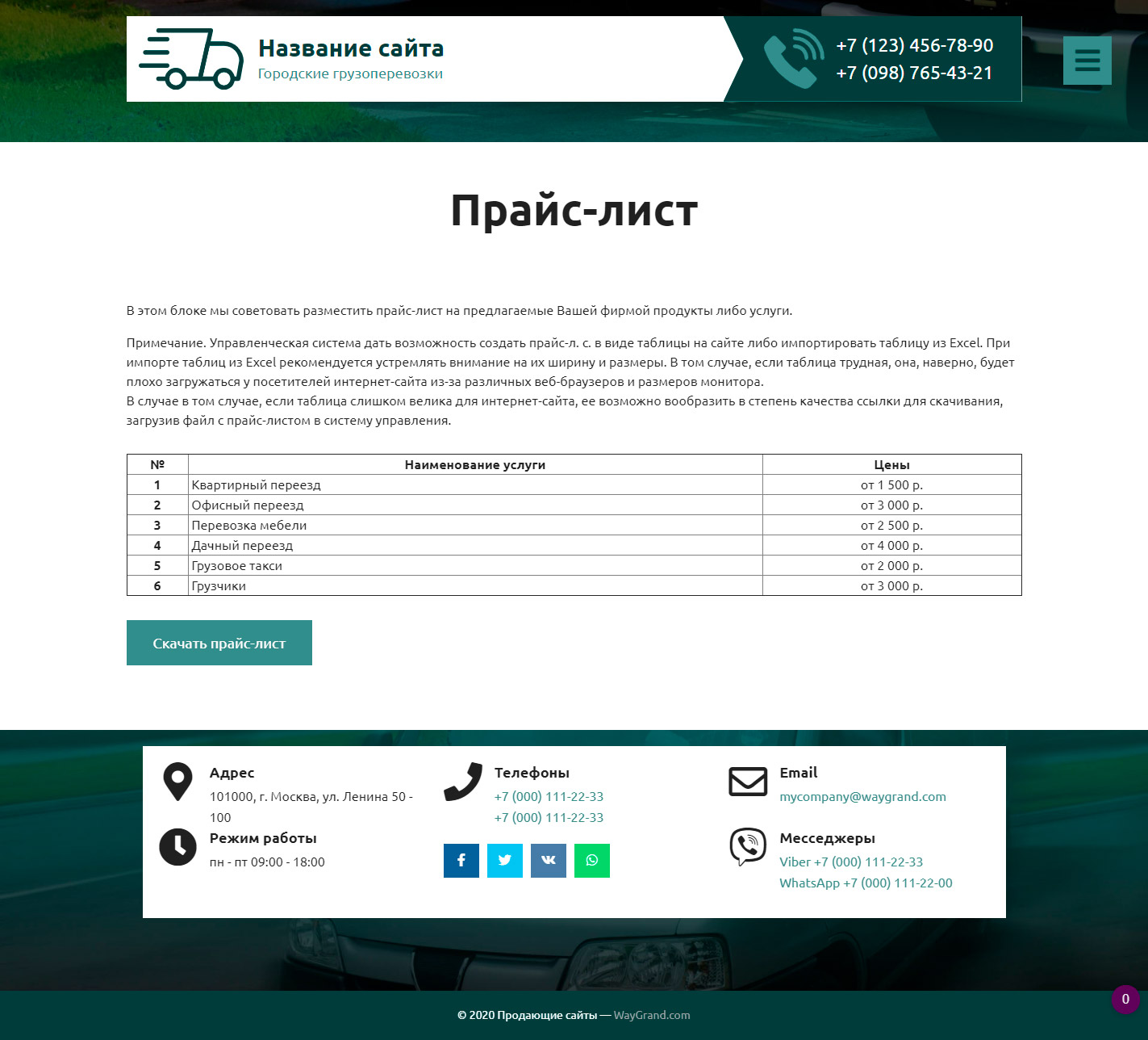 Закажите готовый продающий сайт визитка #2515302 в Самаре за 5-7 дня «под ключ» по доступным ценам на WayGrand: свёрстан, отрисован и готов к рекламе. Тематика шаблона «Городские грузоперевозки».