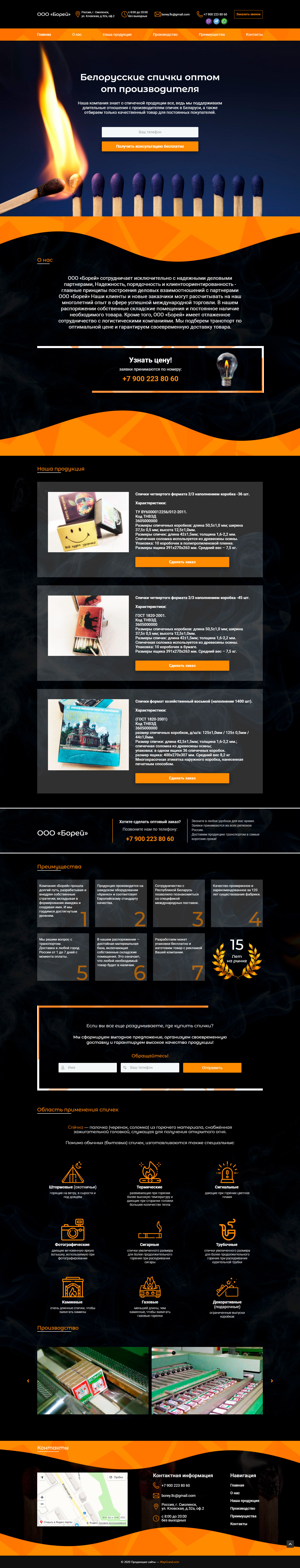 Закажите готовый продающий сайт лендинг #115 в Самаре за 1-3 дня «под ключ»: свёрстан, отрисован и готов к рекламе. Тематика шаблона «Белорусские спички оптом от производителя».