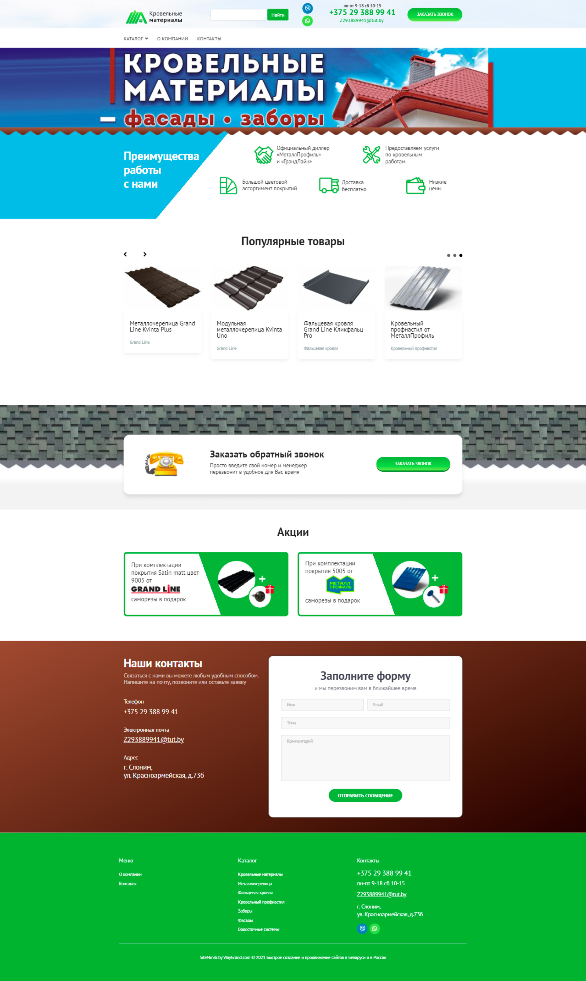 Закажите готовый продающий сайт визитка #324 в Самаре «под ключ» на waygrand по выгодной цене: свёрстан, отрисован и готов к рекламе. Тематика шаблона «Кровельные материалы».