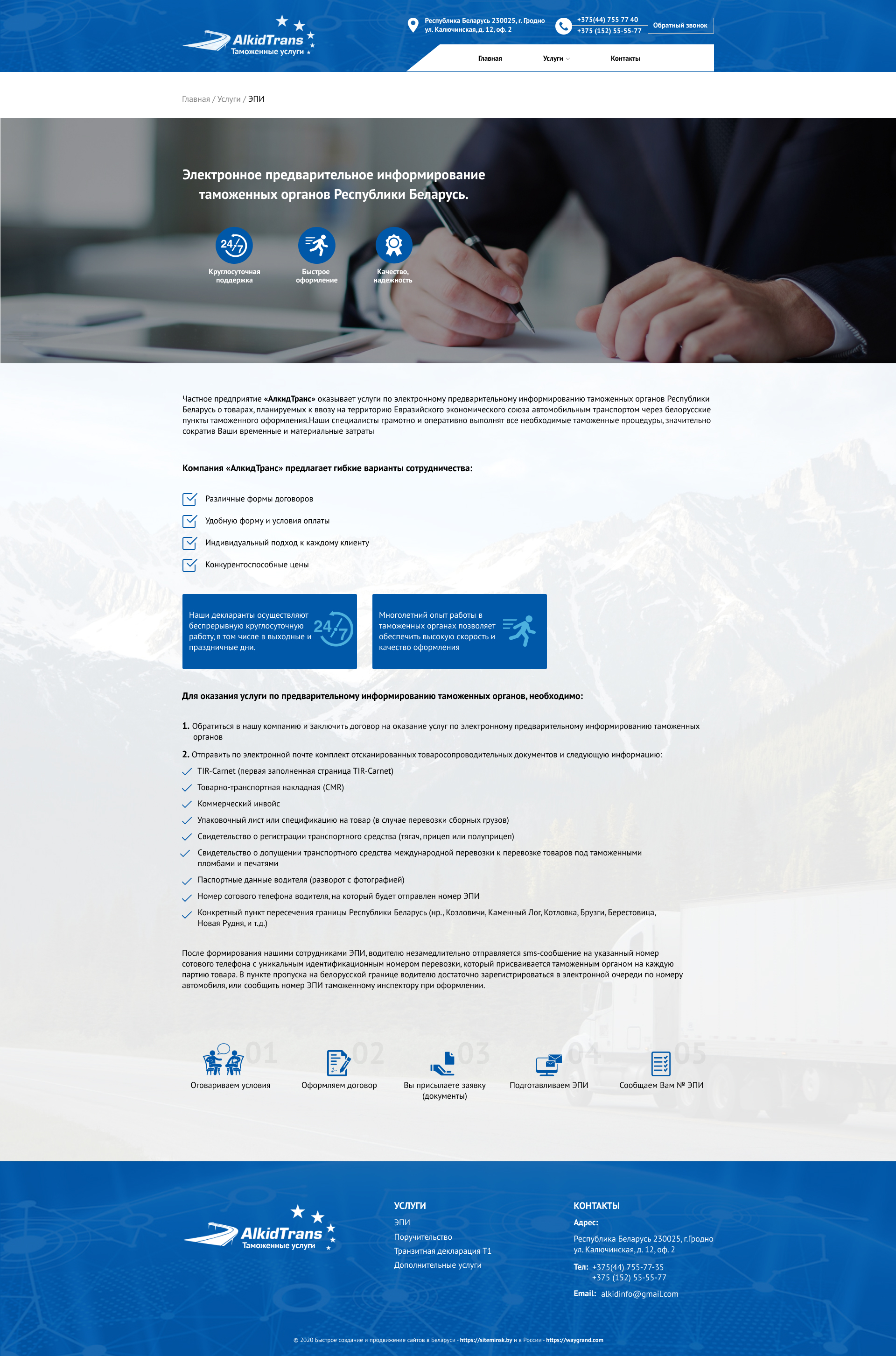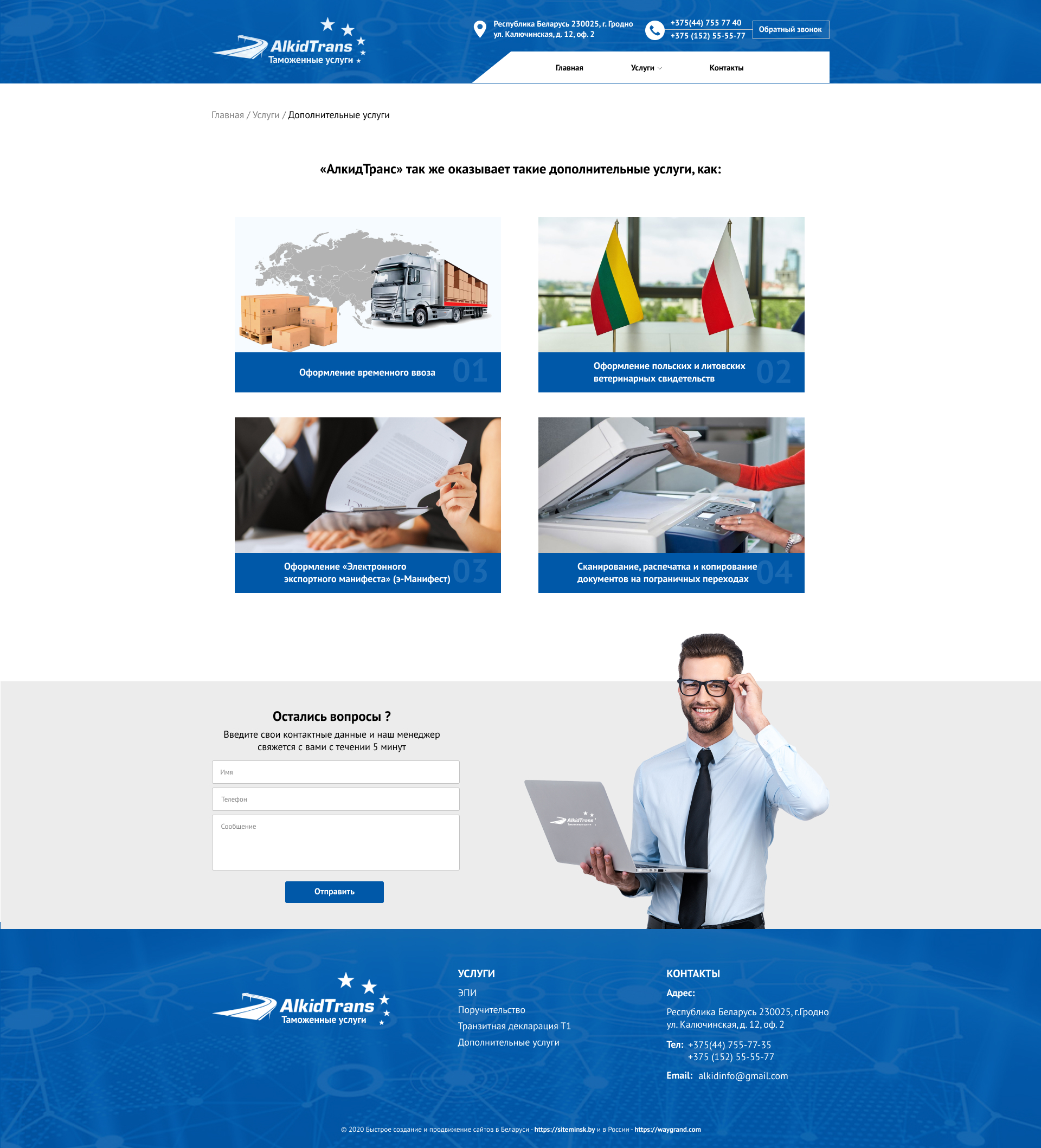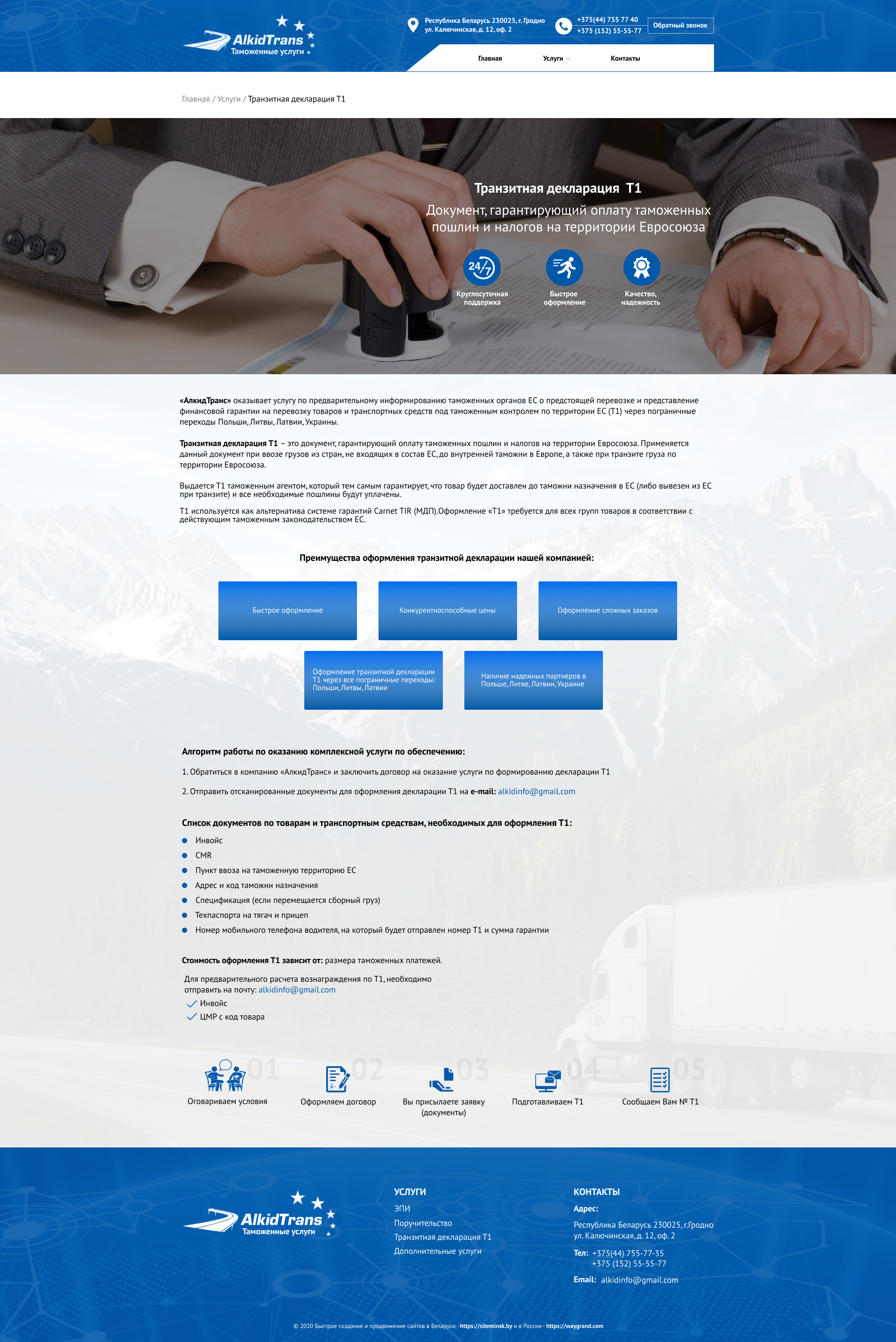 Закажите готовый продающий сайт визитка #234 в Самаре за 5-7 дня «под ключ»: свёрстан, отрисован и готов к рекламе. Тематика шаблона «Таможенные услуги».