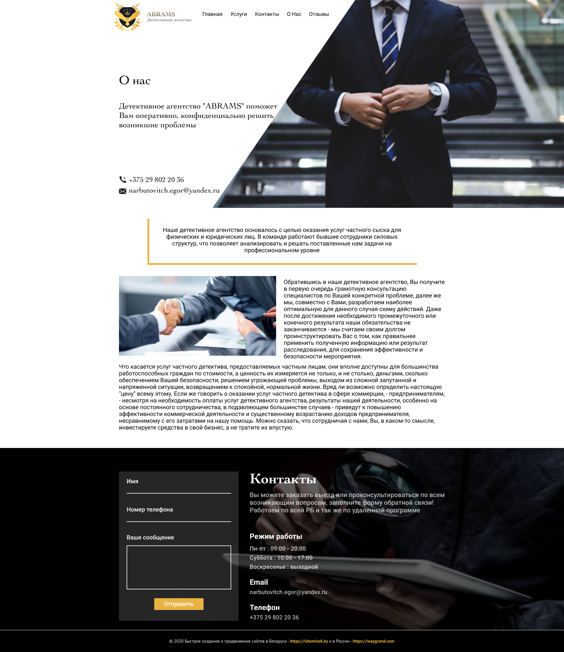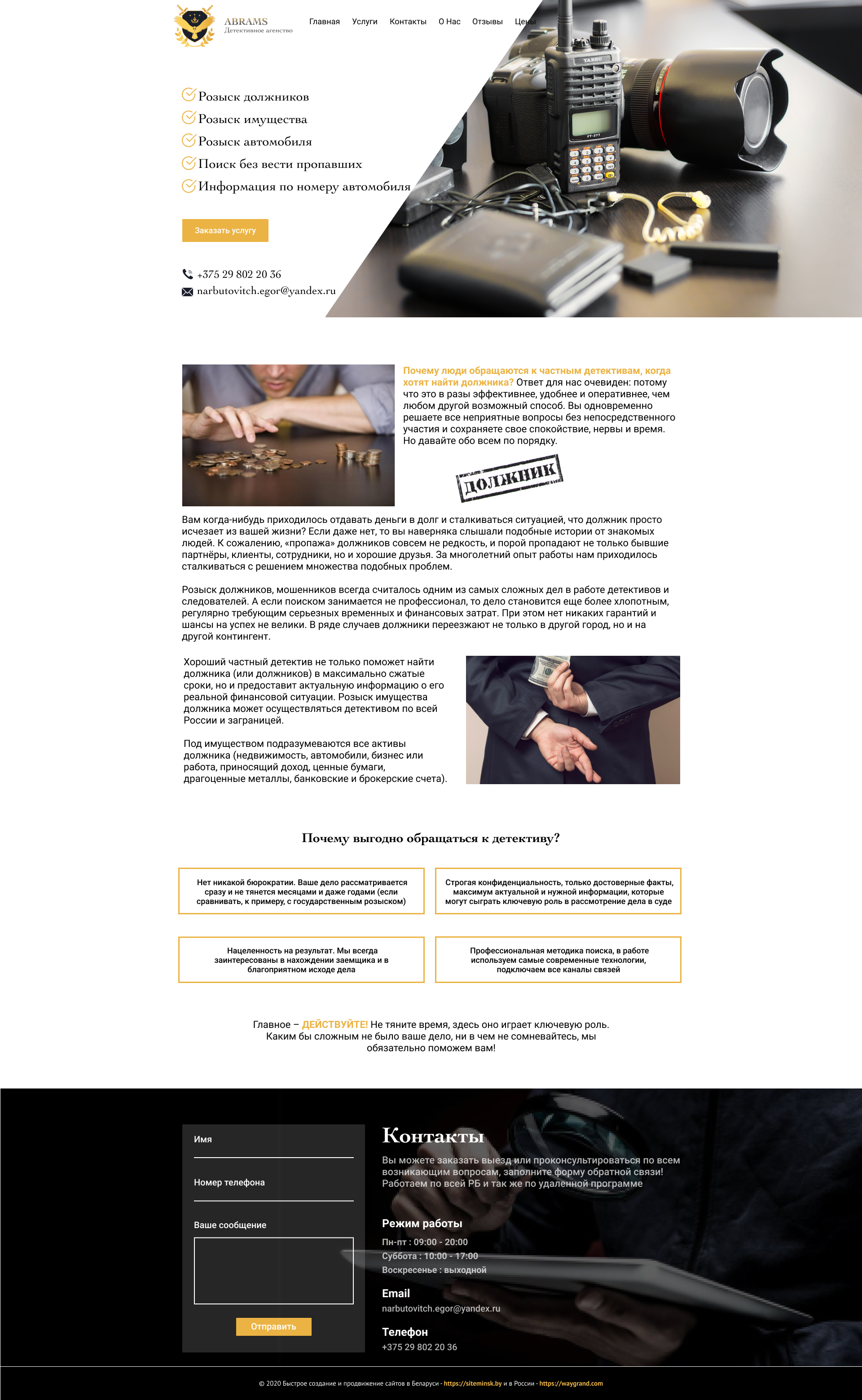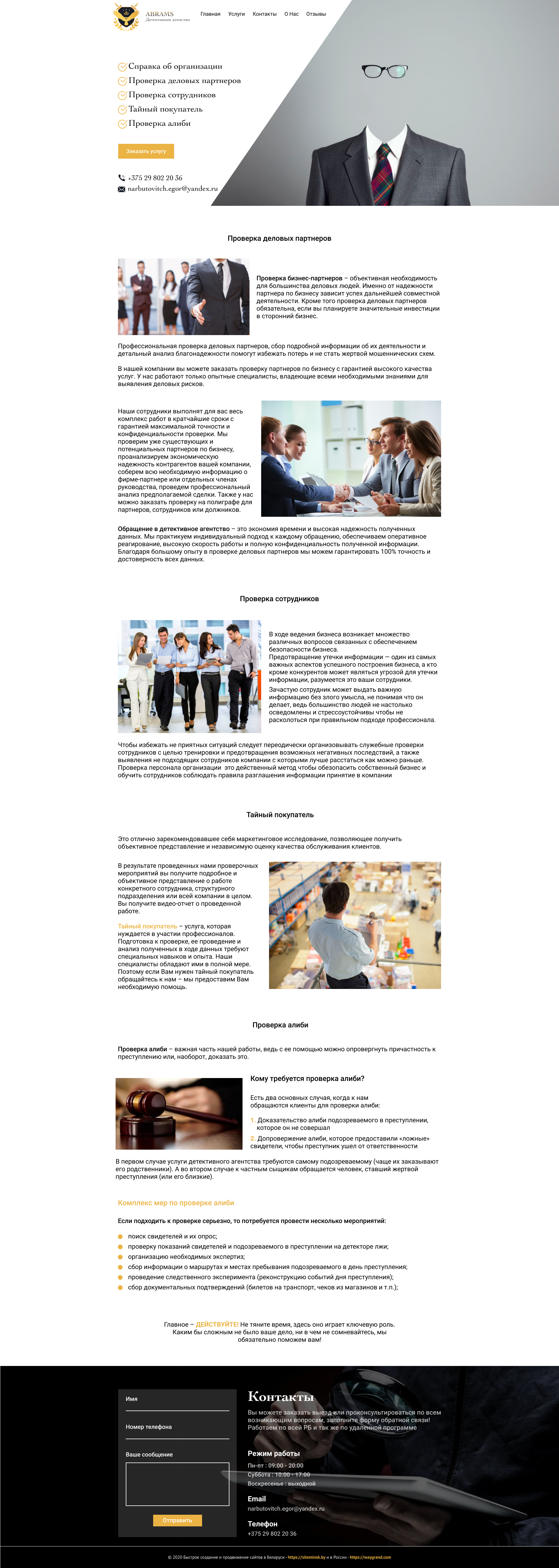 Закажите готовый продающий сайт визитка #239 в Самаре за 5-7 дня «под ключ»: свёрстан, отрисован и готов к рекламе. Тематика шаблона «Частное детективное агентство».